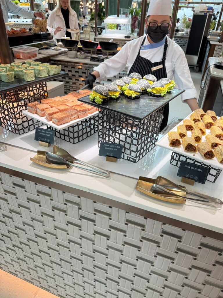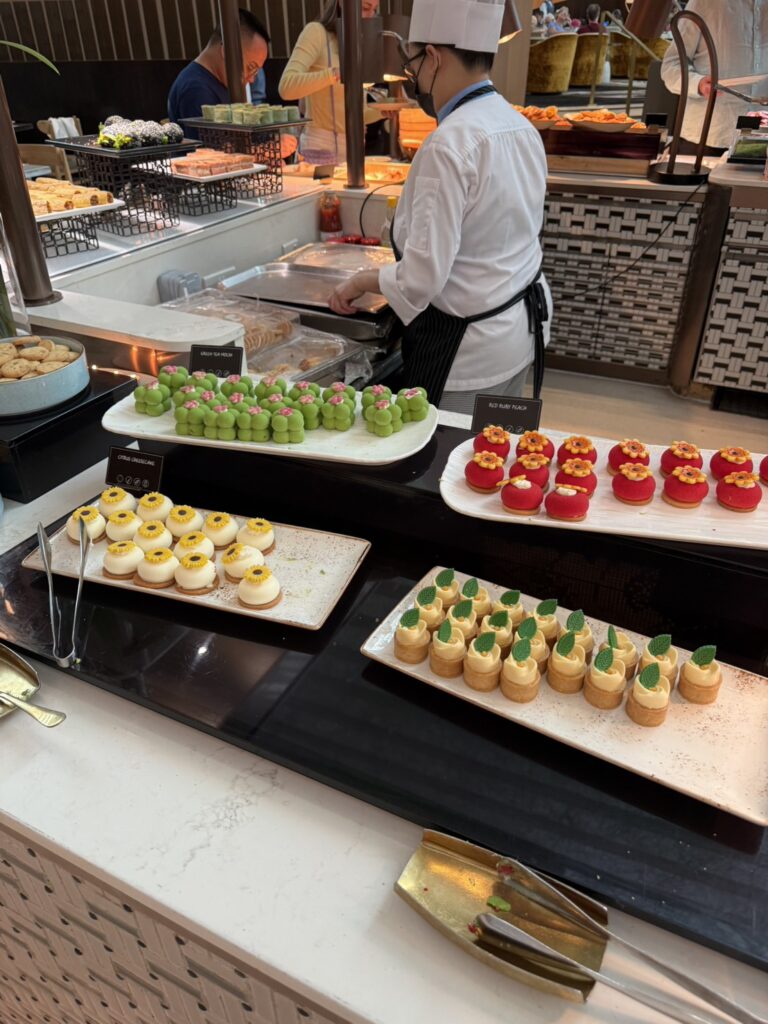 こちらはTower3からエントランスまで続く道です。どんな部屋に泊まれるのだろうと心を躍らせながら歩いていました。その道中に「Rise restaurant」という世界各国の料理を堪能できる場所があり、そちらで無料でアフタヌーンティーをいただくことができました。