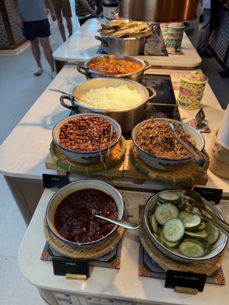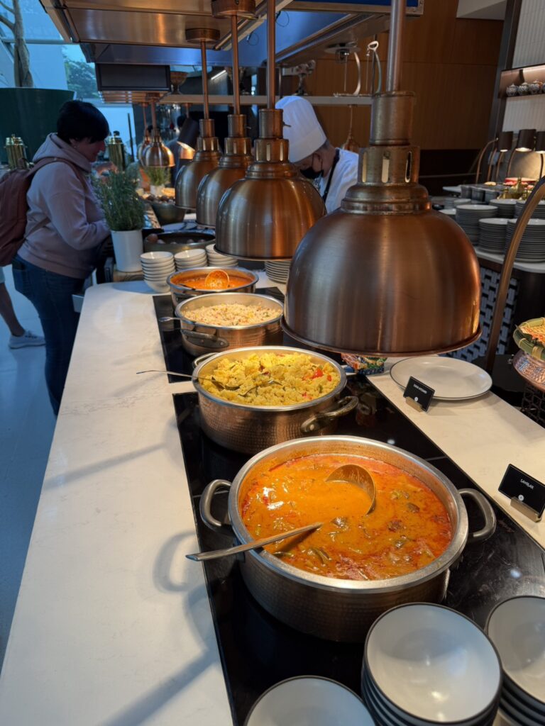世界各国の料理が120種類以上並んでいるシンガポールを代表するホテルビュッフェの一つです。日本食ももちろん揃っており、白米、ふりかけ、納豆、そば・・・と充実していました。以下がビュッフェの一部です。
